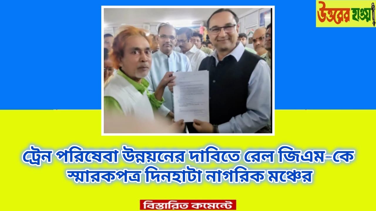 রেল জেনারেল ম্যানেজারের হাতে দাবিপত্র জমা দিল দিনহাটা নাগরিক মঞ্চ ও প্যাসেঞ্জার অ্যাসোসিয়েশন।