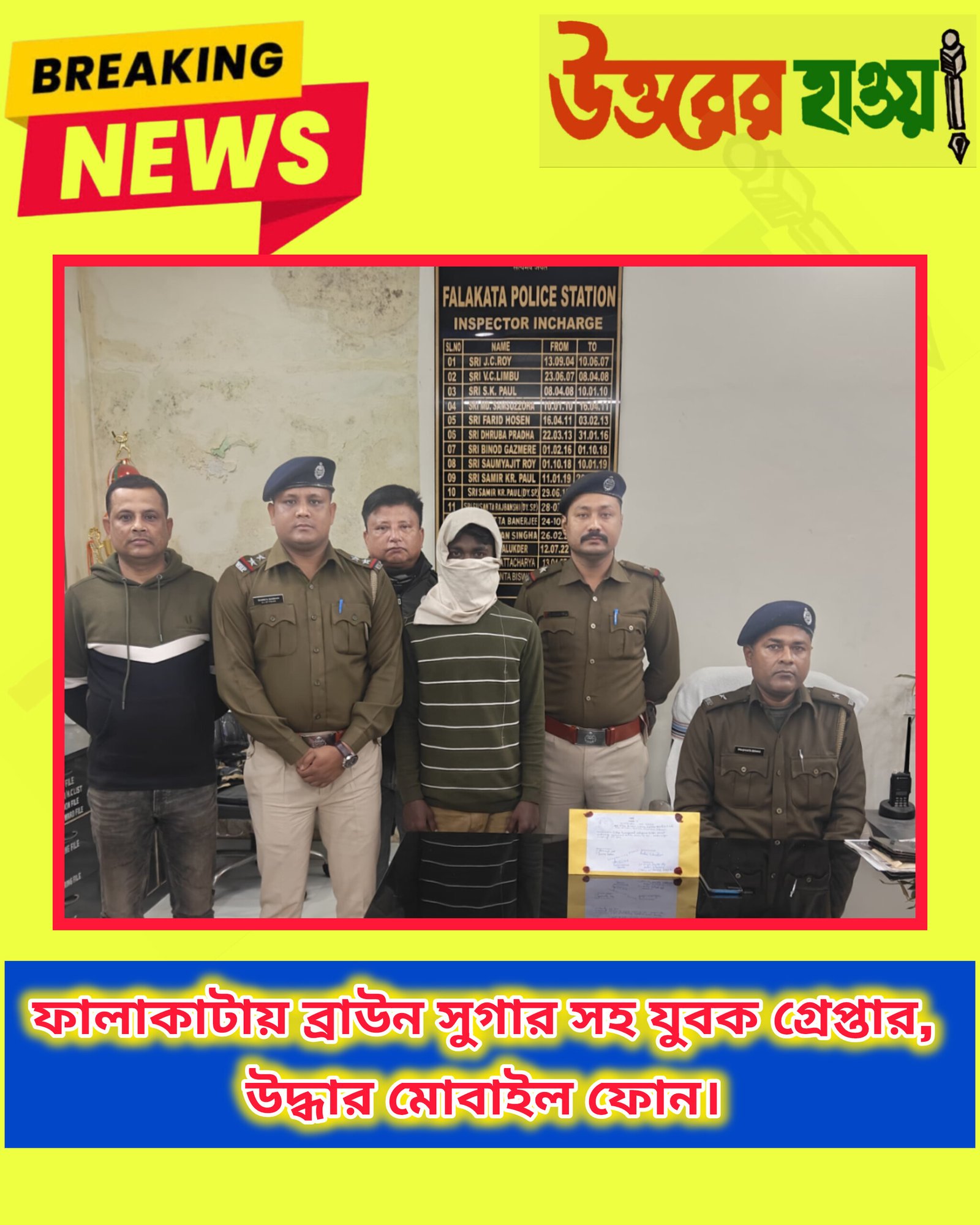 ফালাকাটায় ব্রাউন সুগার সহ যুবক গ্রেপ্তার, উদ্ধার মোবাইল ফোন।