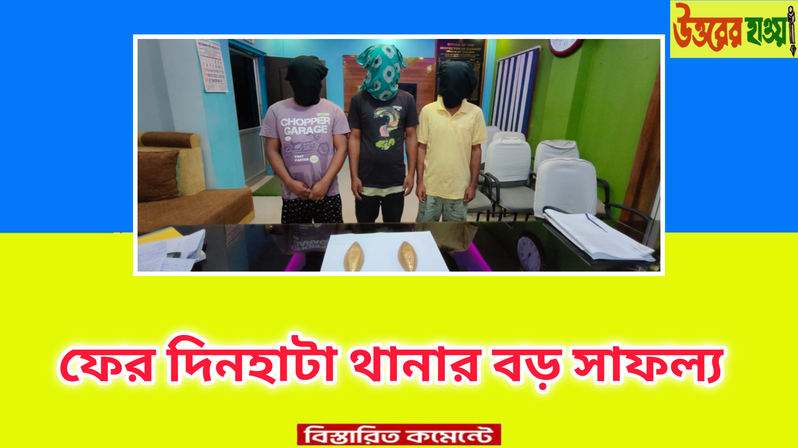 উত্তরের হাওয়া, ৭জুন: জাল সোনার বারের একটি অংশসহ সফিকুল ইসলাম, ফকরুদ্দিন, এনামুল হক নামে তিনজনকে গ্রেফতার করেছে দিনহাটা থানার পুলিশ। ধুতরা যেকোন মোবাইল নম্বরে এলোমেলোভাবে ফোন করত এবং বাজার মূল্যের চেয়ে কম মূল্যের স্বর্ণ কেনার প্রস্তাব করত এবং জানিয়েছিল যে তারা মাটি খননের সময় এই সোনার বার পেয়েছে। এ কথা শুনে কয়েকজন স্বর্ণ কেনার আগ্রহ প্রকাশ করে। তখন চিটাররা টাকার বিনিময়ে এসব সোনার বার বিক্রি করে দেয়। পরে ক্রেতা বুঝতে পারে যে এই সোনার বারগুলি নকল। পুলিশ জানায় এটি একটি বিশাল র্যাকেট। গ্রেপ্তারের পর তাদের পুলিশ হেফাজতে নিয়ে যায় এবং পুলিশের হেফাজত সময়কালে দিনহাটা থানার পুলিশ চতুর্থ নম্বর নকল সোনার বার উদ্ধার করি এবং বাকি ৮ আসামিকে গ্রেপ্তার করে। আটজনের মধ্যে দুজন অভিযুক্ত ব্যক্তি দিনহাটা থানার অধীনে পেটলা এলাকার এবং বাকি ৮ জন আসামের বাসিন্দা। পুলিশি হেফাজত থাকাকালীন সময়ের মধ্যে তাদের দখল থেকে 2,55,000 টাকা / জাল মুদ্রার নোট উদ্ধার করতে সক্ষম হয়েছে। এখন আসামিরা সকলেই দিনহাটা থানার জেল হেফাজতে রয়েছে।