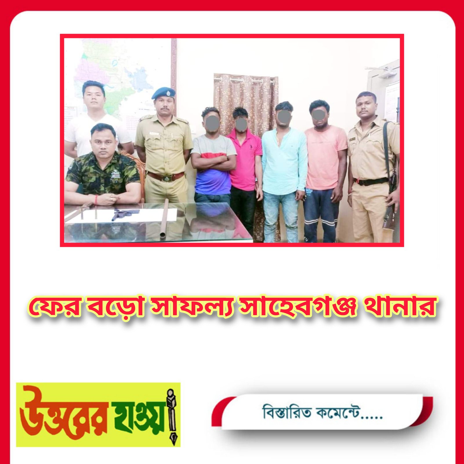 উত্তরের হাওয়া, ১৭ মে: ফের বড়ো সাফল্য সাহেবগঞ্জ থানার। অস্ত্রসহ ডাকাতির উদ্দেশ্যে জড়ো হওয়া ৪ ব্যক্তিকে আটক করল কোচবিহার জেলা পুলিশের সাহেবগঞ্জ থানা। বৃহস্পতিবার গভীর রাত্রে কোচবিহার জেলা পুলিশের সাহেবগঞ্জ থানা গোপন সূত্রে খবর পেয়ে চৌধুরীহাট গ্রাম পঞ্চায়েতের অন্তর্গত কন্ট্রোলেরহাটে ডাকাতি করার উদ্দেশ্যে জড়ো হওয়া ৪ জন ব্যক্তিকে আটক করে এবং তাদের কাছ থেকে ১ টি অবৈধ্য আগ্নেয়াস্ত্র সহ ২ রাউন্ড তাজা গুলি এবং ১ টি চপারসহ ১ টি লোহার রড উদ্ধার হয়। ধৃতদের গ্রেপ্তার করে নির্দিষ্ট আইনে মামলা রুজু করে তদন্ত শুরু করেছে কোচবিহার জেলা পুলিশের সাহেবগঞ্জ থানা।