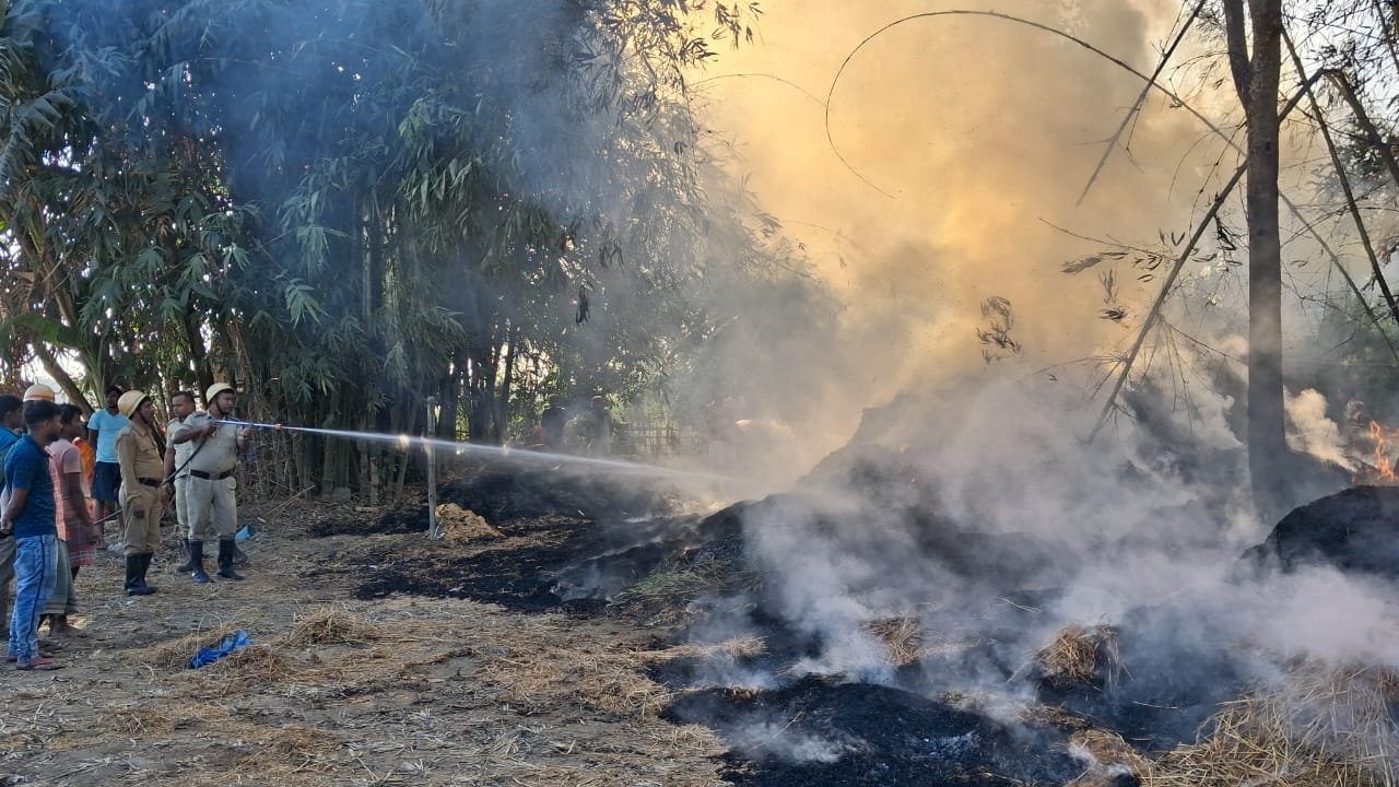 উত্তরের হাওয়া, ১৭ ডিসেম্বর: পাকার মাথা বটতলা এলাকায় খড়ের গাদায় আগুন, ঘটনাস্থলে দমকলের বাহিনী। এলাকায় চাঞ্চল্য। স্থানীয় সূত্রে জানা গিয়েছে মঙ্গলবার বেলা আড়াইটা নাগাদ দিনহাটা ২ নং ব্লকের কিয়ামত দশগ্রাম গ্রামপঞ্চায়েতের এলাকার সুভাষ দাস নামের এক ব্যক্তির খড়ের গাদায় আগুন লাগার ঘটনায় এলাকায় চাঞ্চল্যের সৃষ্টি হয়েছে। এলাকার লোকজন দেখতে পেয়ে জল দিয়ে আগুন নেভানোর কাজে হাত লাগায়, পরবর্তী সময়ে যখন আগুন নিয়ন্ত্রণের বাইরে চলে যায় তারপর পরে এলাকার লোকজন দিনহাটা দমকলে খবর দেন। দিনহাটা দমকলের একটি ইঞ্জিন এসে আগুন নিয়ন্ত্রণে আনে। ওই ঘটনায় এলাকায় চাঞ্চল্যের সৃষ্টি হয়েছে। তবে কি ভাবে আগুন লাগলো তা এখনো জানা যায়নি।