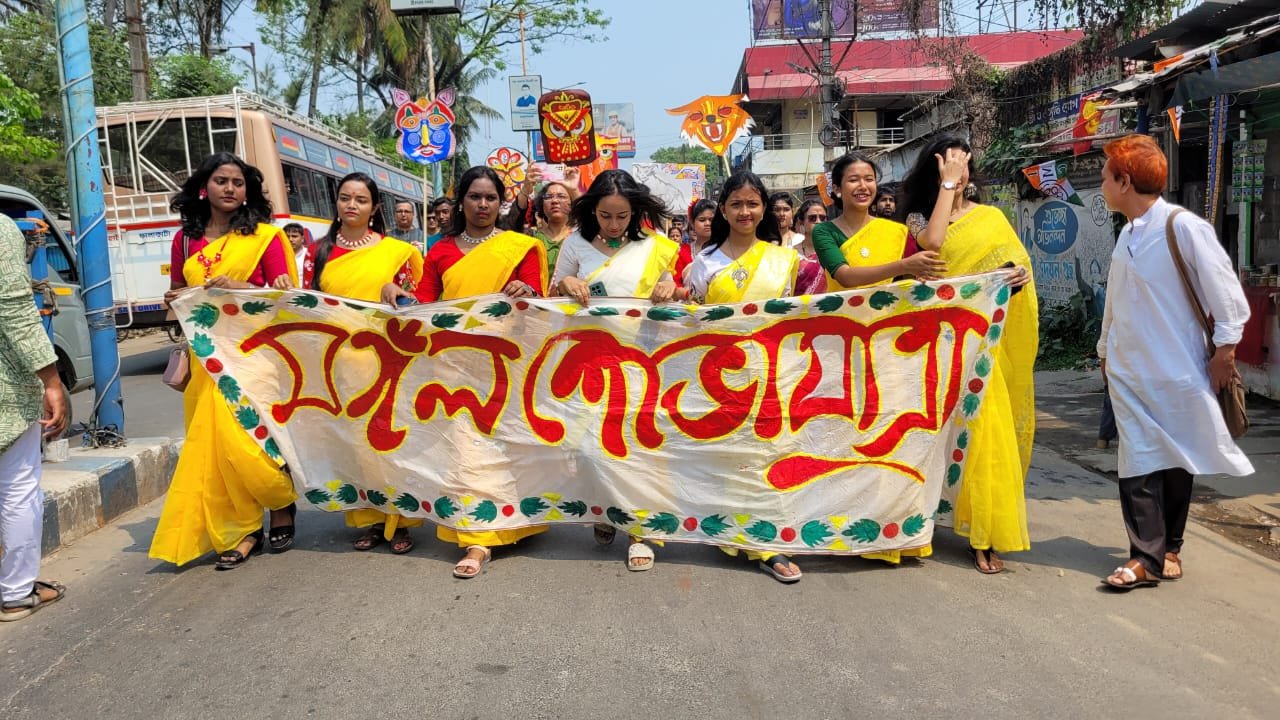 উত্তরের হাওয়া, ১৪ এপ্রিল: উত্তরবঙ্গের ছোট্ট শহর দিনহাটা। কিন্তু সংস্কৃতিতে বরাবর এগিয়ে এই শহর। সাম্প্রতিক সময়ে রাজনৈতিক হিংসায় বারবার দিনহাটা শিরোনামে আসলেও বাংলার কৃষ্টি - সংস্কৃতি ধারক ও বাহক মানুষের মিলিত কর্ম প্রয়াস জারি আছে। ২০১৮সালে বাংলার সংস্কৃতিকে ফুটিয়ে তুলতে উত্তরবঙ্গের মধ্যে প্রথম মঙ্গল শোভাযাত্রা এই দিনহাটা শহর থেকেই শুরু হয়। প্রতিবছরের মত এবছরও দিনহাটা মঙ্গল শোভাযাত্রা গবেষণা ও প্রসার কেন্দ্রের ব্যবস্থাপনায় নতুন বছরের প্রথম দিনে এক বর্ণাঢ্য শোভাযাত্রার আয়োজন করা হল।এই শোভাযাত্রায় দিনহাটার বিশিষ্ট জনদের পাশাপাশি ধর্ম, বর্ণ নির্বিশেষে সমাজের সকল স্তরের মানুষ ও নবীন প্রজন্মের ভিড় লক্ষ্য করা যায়। এই শোভাযাত্রাকে ফুটিয়ে তুলতে নানা ধরনের শিল্পকর্ম তৈরির কাজে দিনরাত এক করে কাজ করেছে সংস্থার সদস্যরা। শহরের বোর্ডিং পাড়া মাঠ থেকে এই শোভাযাত্রা শুরু হয়ে গোটা শহর পরিক্রমা করে আবার বোর্ডিং মাঠে এসে শেষ হয়।তারপর সেখানে চলে বৈশাখী আড্ডা। নাচে, গানে, আড্ডায় জমজমাটভাবে পালিত হয় শোভাযাত্রা।পাশাপাশি, জমজমাট বৈশাখী হাট সেজে উঠে সৃজনশীল কিশোর - কিশোরীদের হাতের কাজে বাহারি অলংকার, বুকমার্ট, পটচিত্রে । সেই সাথে হাটে ছিল তরুণ প্রজন্মের শিল্পীদের তৈরি শিল্পকর্মের প্রদর্শনী। এই মঙ্গল শোভাযাত্রায় দলমত,ধর্ম,বর্ণ নির্বিশেষে সকল দিনহাটাবাসীর অংশ নিয়েছে । ২০১৬ সালে ‘‘মঙ্গল শোভাযাত্রা’’ জাতিসংঘ সংস্থা ইউনেস্কোর মানবতার অধরা বা অস্পর্শনীয় সাংস্কৃতিক ঐতিহ্যের তালিকায় স্থান লাভ করেছে। এই শোভাযাত্রার মধ্য দিয়েই মূলত বাংলার সংস্কৃতি ও ঐতিহ্যকে তুলে ধরা হয়, সঙ্গে দেওয়া হয় সম্প্রীতির বার্তা।শোভাযাত্রা এগিয়ে যাবার সঙ্গে সঙ্গে চলে নৃত্যানুষ্ঠান। বিভিন্ন ধরনের মুখোশ নিয়ে শোভাযাত্রায় অংশগ্রহণ করে বাংলা সংস্কৃতি ও ঐতিহ্যকে তুলে ধরেন উদযাপন কমিটির সদস্যরা। মেয়েরা ঐতিহ্যবাহী হলুদ শাড়ি ও ছেলেরা হলুদ পাঞ্জাবী পড়ে মূলত শোভাযাত্রায় অংশগ্রহণ করে। এদিনের এই শোভাযাত্রায় অংশগ্রহণ করেন দিনহাটা সংস্কৃতিপ্রেমী বিভিন্ন মানুষেরা ও বিশিষ্ঠজনেরা। উপস্থিত ছিলেন দিনহাটা হাসপাতালের সুপার চিকিৎসক রঞ্জিত মন্ডল, বিশিষ্ট চিকিৎসক অজয় মন্ডল, রাষ্ট্রপতি পুরস্কার প্রাপ্ত প্রাক্তন শিক্ষক শ্যামল ধর, বিশিষ্ট চিত্রশিল্পী রথীন্দ্র নাথ সাহা, আবৃত্তিকার শিলাদিত্য রায়, বিশিষ্ট ক্রীড়াবিদ চন্দন সেনগুপ্ত, দিনহাটা নাগরিক মঞ্চের সম্পাদক জয়গোপাল, বিশিষ্ট চিকিৎসক অজয় মন্ডল, উজ্জ্বল আচার্য প্রমুখ । আয়োজকদের পক্ষে সহস্রী বর্মন, টুটুল সরকার জানান, বাংলা নববর্ষের দিনে সাম্প্রদায়িক সম্প্রীতির বার্তা দিতে বাংলাদেশের ঢাকা ব