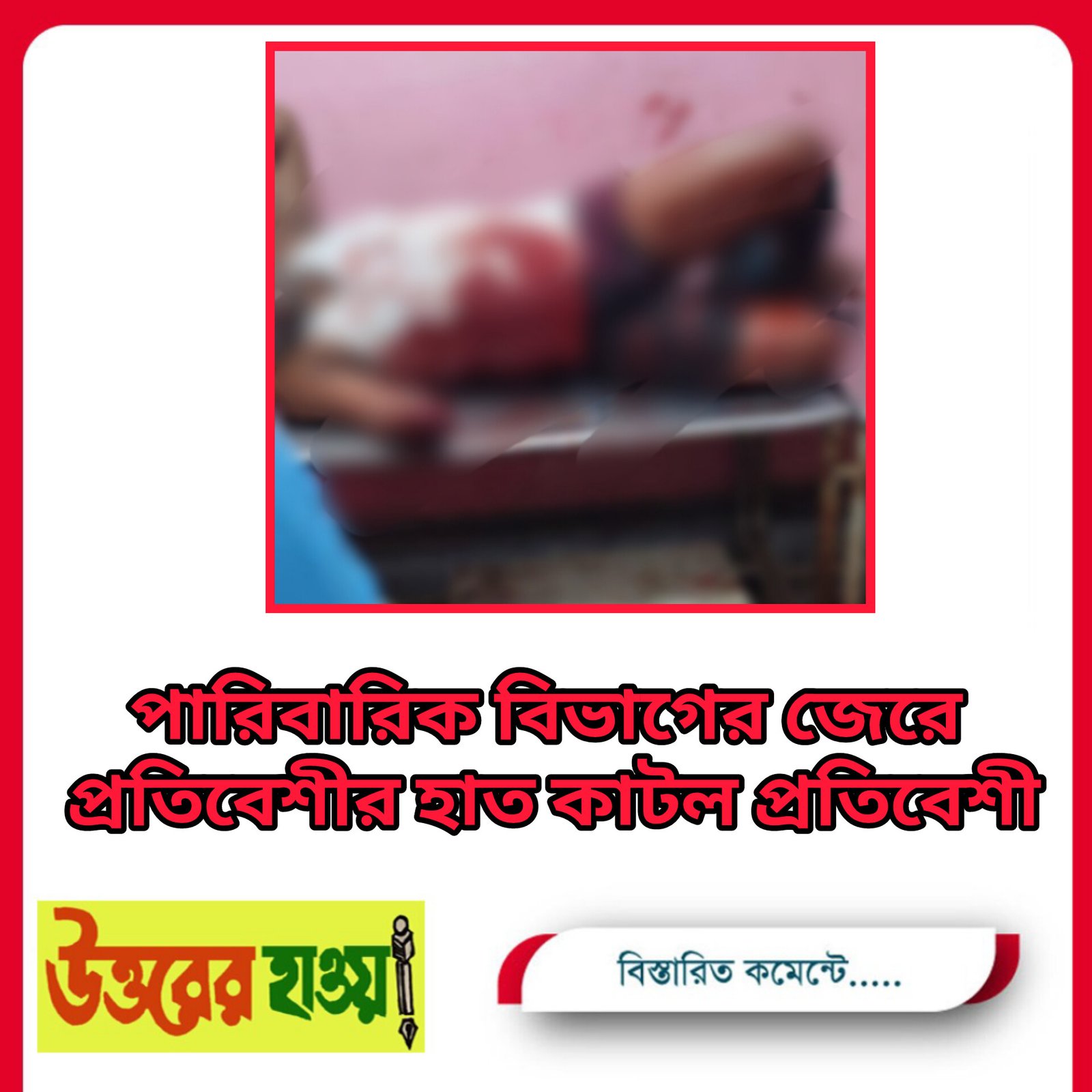 উত্তরের হাওয়া, ৫ আগস্ট: পারিবারিক বিভাগের জেরে প্রতিবেশীর হাত কাটল প্রতিবেশী। চাঞ্চল্যকর এই ঘটনাটি ঘটেছে কোচবিহার ২নং ব্লকের পুন্ডিবাড়ী থানা এলাকার পাতলাখাওয়া সুখ ধানের কুঠিতে। পুলিশ সূত্রে জানানো হয়েছে, প্রতিবেশী বেলাল হোসেনের ছাগল তারই প্রতিবেশী মেহেদী হোসেন এর জমিতে ঘাস খাচ্ছিল। তাই নিয়ে বিবাদ এর সূত্রপাত। ঘটনায় প্রতিবেশী মেহেদী হোসেন বেলাল হোসেনের হাত কেটে দেয়। কিছুক্ষণ আগে মেহেদী হোসেন পুন্ডিবাড়ি থানায় এসে আত্মসমর্পণ করে স্বীকার করে যে, সে এবং তার মামা প্রতিবেশী বেলাল হোসেনের হাত কেটেছে। মেহেদী হোসেনের ধানক্ষেতে ছাগল চড়ানোকে কেন্দ্র করে বিবাদের কারণেই এই ঘটনা ঘটেছে। আহত বেলাল হোসেনকে শিলিগুড়ি মেডিকেল কলেজ এবং হাসপাতালে স্থানান্তরিত করা হয় চিকিৎসার জন্য। ঘটনা তদন্ত শুরু করেছে এ পন্ডিবাড়ী থানার পুলিশ।