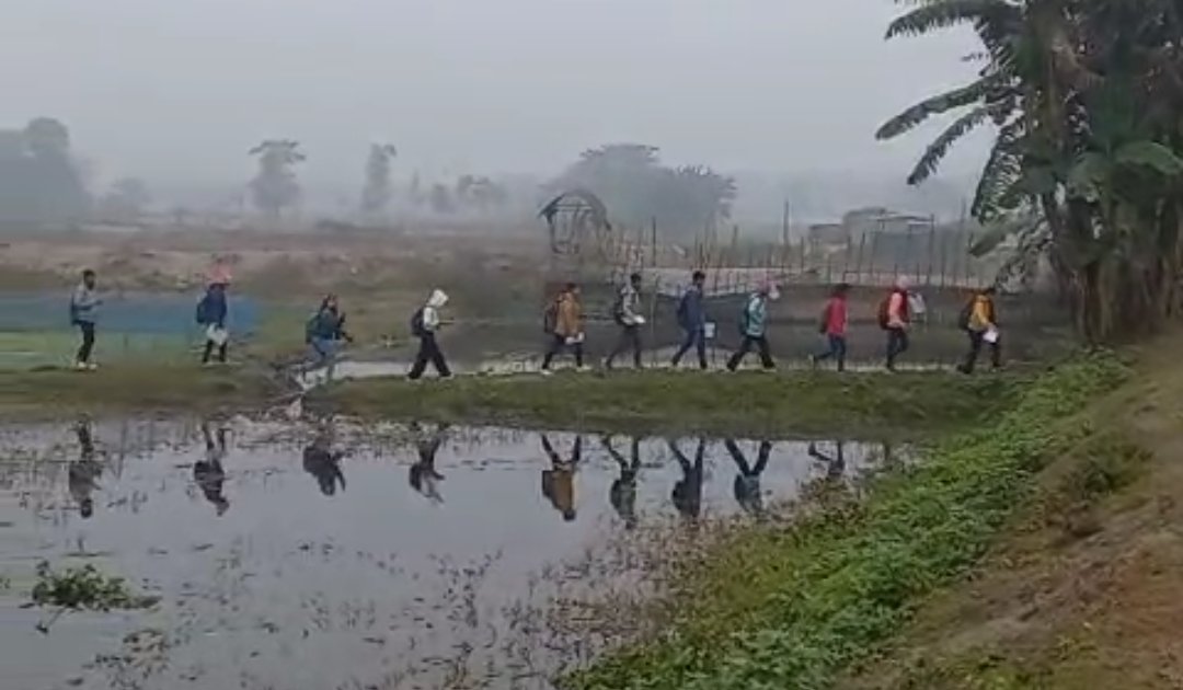 উত্তরের হাওয়া, ১৮ জানুয়ারি: দিনহাটা কলেজের ভূগোল বিভাগের উদ্যোগে ছাত্রছাত্রীদের নিয়ে স্থানীয় নদী বানিয়াদহ এর উৎস স্থান থেকে শুরু করে নদীর বিভিন্ন বাঁকে বাসন্তীর হাট দেওয়ানহাট নয়ার হাট নিগমনগর গীতালদহ অঞ্চলে নদীর হাল হাকিকত সম্পর্কে বিভিন্ন সমীক্ষা করা হলো এবং শেষে ভারত ও বাংলাদেশ এর পূর্বের সংযোগ স্থাপনকারী মোগলহাট ব্রিজ বিশেষ অনুমতি নিয়ে ঘুরে দেখল এবং সেই সাথে বাংলাদেশের সীমান্তবর্তী অঞ্চল সেই অঞ্চলের মানুষজন এবং পরিবেশ নদীর বর্তমান অবস্থা। সাথে ছাত্রছাত্রীরা নদীর বিভিন্ন স্থানে বিভিন্ন ফলের গাছের বীজ লাগিয়েছে এবং তারা অঙ্গীকারবদ্ধ হয়েছে ভবিষ্যতে এই নদীকে আরো স্বাস্থ্যসম্মত করে তোলা এবং পার্শ্ববর্তী অঞ্চল গুলোকে বনায়ন করা। আজকের এই স্থানীয় ভূগোল পরিবেশ ইতিহাস নদী সম্পর্কে জ্ঞান স্থানীয় মানুষজন ও সীমান্তবর্তী অঞ্চলের মানুষ জনের সাথে আন্ত আলোচনার মধ্য দিয়ে নতুন এক পদক্ষেপ দিনহাটা কলেজ থেকে নেওয়া হয়েছে যা অদূর ভবিষ্যতে বৃহত্তর ছাত্রসমাজ আরো পরিবেশ সচেতন হয়ে উঠবে এবং নিজের অঞ্চলকে জানতেও বুঝতে শিখবে। অনুষ্ঠানে উপস্থিত ছিলেন দিনহাটা কলেজের ভূগোল বিভাগের প্রধান ডঃ বাপ্পা সরকার , তন্ময় সাহা ও বিষ্ণু বর্মন। দিনহাটা কলেজের অধ্যক্ষ ডক্টর আব্দুল আউয়াল এই ধরনের উদ্যোগকে সাধুবাদ জানিয়েছেন এবং পরবর্তীকালে বিভিন্ন কর্মসূচির মধ্য দিয়ে ছাত্রছাত্রীরা উদ্বুদ্ধ হয় এই আশা রাখেন।