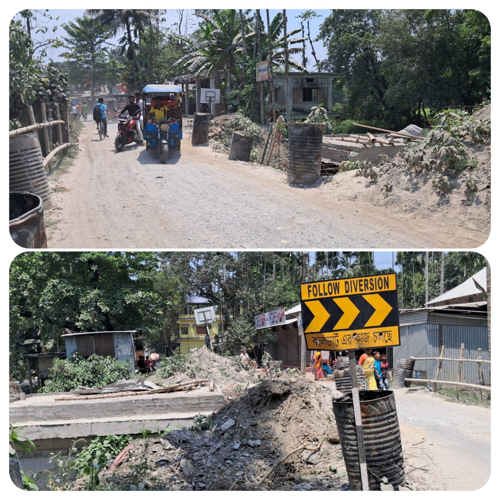 উত্তরের হাওয়া, দিনহাটা, ২৮ এপ্রিল: সদ্য তৈরী করা কাঠের আসবাব পত্রে জল ঢেলে পরিষ্কার করছিলেন বছর চল্লিশের জোৎস্না মোদক। কারন জিজ্ঞাসা তাঁর ঝাঁঝালো উত্তর, “ধুলোয় জীবন অতিষ্ঠ। নিজেদের সর্দিকাশ তো লেগেই আছে। তার উপর যেদিন থেকে কালভার্টের কাজ শুরু হয়েছে, সেদিন থেকেই দোকানে বানানো আসবাবপত্রেও ধুলোর আস্তরন পড়ে যাচ্ছে। সেগুলো জল দিয়ে পরিষ্কার না করলে বিক্রিই হচ্ছেনা। দ্রুত কালভার্টের কাজ শেষ করা হোক।” শুধু চল্লিশোর্ধ এই আসবাবপত্রের দোকানি নন, কোচবিহার জেলার দিনহাটা ২ ব্লকের বামনহাট ব্লক প্রাথমিক স্বাহ্যকেন্দ্র সংলগ্ন এলাকায় ঘুরতেই নির্মীয়মান কালভার্ট নিয়ে ক্ষোভ ও বিরক্তির সুর ধরা পড়ল স্হানীয় বাসিন্দা, ব্যবসায়ী, নিত্যযাত্রী ও গাড়ির চালকদের গলায়। স্হানীয় এলাকায় খোঁজ নিতেই জানা গেল, মাস তিনেক আগে সাহেবগঞ্জ থেকে বামনহাট পর্যন্ত পাকা রাস্তা সম্প্রসারনের কাজ হাতে নিয়েছে পূর্ত(সড়ক) দপ্তর। রাস্তা সম্প্রসারনের কাজের অংশ হিসেবেই বামনহাট ব্লক প্রাথমিক স্বাস্থ্যকেন্দ্র সংলগ্ন এলাকায় একটি কালভার্টের কাজও শুরু হয়। অভিযোগ, রাস্তার এক দিক বন্ধ করে কালভার্টের একটি অংশের কাজ ইতিমধ্যেই শেষ হয়েছে। অথচ প্রায় দুই মাস পেরিয়ে গেলেও কালভার্টের অপর অংশের কাজ শুরু করা হয়নি। ফলে দীর্ঘদিন ধরে রাস্তার সরু অংশ দিয়েই যাতায়াত করতে হচ্ছে সাধারণ মানুষ ও নিত্যযাত্রীদের। এতে ব্যস্ত সময়ে যানজট হচ্ছে। পাশাপাশি নিত্যদিন ধুলোর ঝড় সইতে হচ্ছে স্হানীয়দের। এমন পরিস্হিতিতে দ্রুত কাজ শেষ করে রাস্তায় চলাচল স্বাভাবিক করার দাবী উঠছে। যদিও সংশ্লিষ্ট রাস্তার দায়িত্বপ্রাপ্ত পূর্ত দপ্তরের ইঞ্জিনিয়ার সুজয় হেমব্রমের দাবী, জমি সংক্রান্ত ঝামেলায় বিষয়টি আটকে রয়েছে। সমস্যা মিটিয়ে দ্রুত কাজ শেষ করার চেষ্টা চলছে। দিনহাটা মহকুমার অন্যতম গুরুত্বপূর্ন সাহেবগঞ্জ-বামনহাট সড়ক। ভারত বাংলাদেশ সীমান্ত লাগোয়া এই সড়ক মহকুমার সাহেবগঞ্জ ও দিনহাটার সাথে সীমান্তের চৌধুরিহাট, বামনহাট ২ সহ বিস্তির্ন এলাকার সংযোগ মাধ্যম হিসেবে গুরুত্বপূর্ন। এমনকি সীমান্ত সুরক্ষার বিষয়টি এতে জড়িত। রাস্তাটি সংস্কার ও সম্প্রসারণের দাবী দীর্ঘদিনের। ভোটের আগে প্রায় ৬ কিমি দীর্ঘ রাস্তাটির সম্প্রসারনের জন্য ৯ কোটি টাকা বরাদ্দ করেছে পূর্ত দপ্তর। সেই কাজও চলছে জোরকদমে। সেই কাজের অংশ হিসেবেই তৈরী হচ্ছে কালভার্টটি। স্বভাবতই গুরুত্বপূর্ণ রাস্তায় অবস্হিত কালভার্টটির কাজ শেষ না হওয়ায় সমস্যায় পড়ছেন অনেকেই। স্হানীয় বাসিন্দা প্রভাত সেনের অভিযোগ, ধুলোর চোটে রাস্তায় বেরোনো যাচ্ছেনা। ঘরের দরজা জানালাও বন্ধ করে রাখতে হচ্ছে। দ্রুত কাজ শেষ করা হোক। ধুলো নিয়ন্ত্রনে র