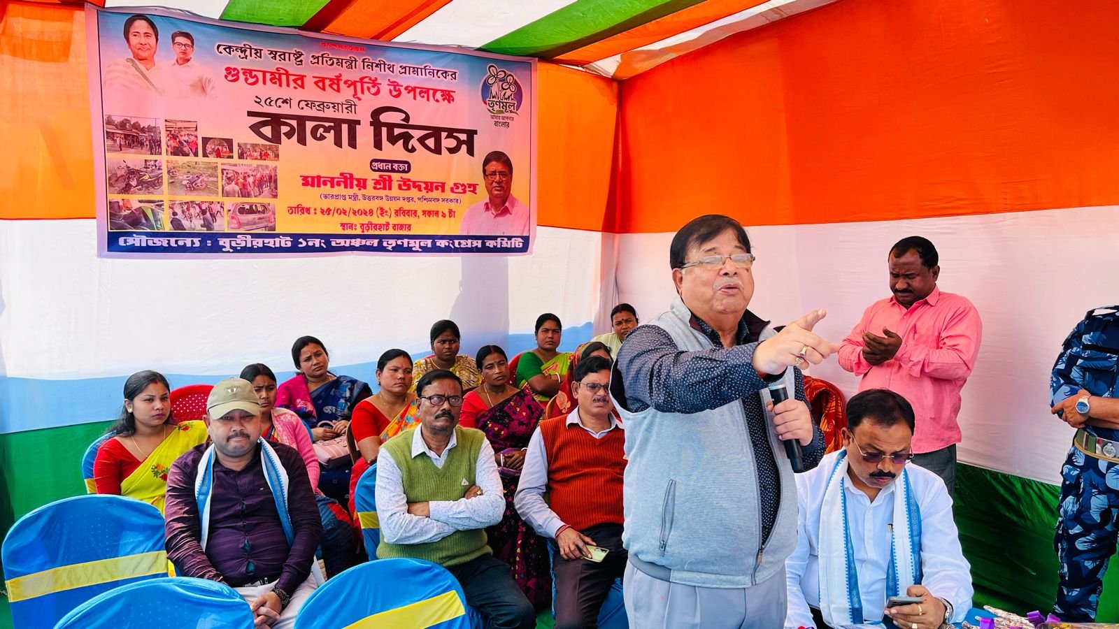 উত্তরের হাওয়া, ২৫ফেব্রুয়ারি: ২০২৩ সালের ২৫ ফেব্রুয়ারি তৃণমূল বিজেপি সংঘর্ষে উত্তাল হয়েছিল দিনহাটা ২ ব্লকের বুড়িরহাট। ঘটনার সাথে প্রত্যক্ষ ও পরোক্ষভাবে নাম জড়িয়েছিল কেন্দ্রীয় স্বরাষ্ট্র প্রতিমন্ত্রী নিশীথ প্রামাণিক ও উত্তরবঙ্গ উন্নয়ন মন্ত্রী উদয়ন গুহের। দুই হেভিওয়েটের লড়াইয়ের রেশ পৌছেছিল রাজ্য রাজনীতিতেও। রবিবার সেই ঘটনার বর্ষপুর্তিতে পুরো ঘটনার দায় বিজেপিকে চাপিয়ে দিনটিকে কালা দিবস হিসেবে পালন করলেন ঘাসফুলের স্হানীয় অঞ্চল কমিটি। এদিন সকাল ১১টা নাগাদ বুড়িরহাট বাজার প্রাঙ্গনে আয়োজিত এই কর্মসুচিতে তৃণমূল বিধায়ক তথা রাজ্যের মন্ত্রী উদয়ন গুহ, তৃণমূলের দিনহাটা ২ ব্লক সভাপতি দীপক ভট্টাচার্য্য, সহসভাপতি আব্দুর সাত্তার সহ স্হানীয় নেতৃত্ব উপস্হিত ছিলেন। কর্মসুচিতে বক্তব্য দিতে গিয়ে বিজেপির বিরুদ্ধে সন্ত্রাসের দায় চাপিয়ে বিষেদগার করেন মন্ত্রী। পাশাপাশি কেন্দ্রীয় মন্ত্রীকেও নানা ভাবে নিশানা করেন তিনি।